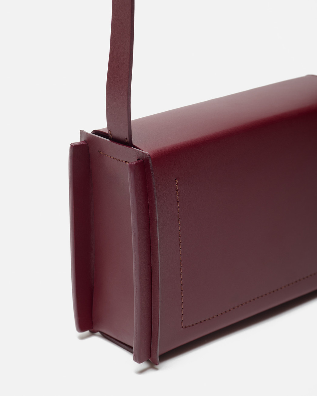 Clutch is made of vegetable-tanned leather. It has a velour lining with an internal patch pocket. Designed to be carried as a clutch, worn short over the shoulder with short strap or across the body with longer strap.